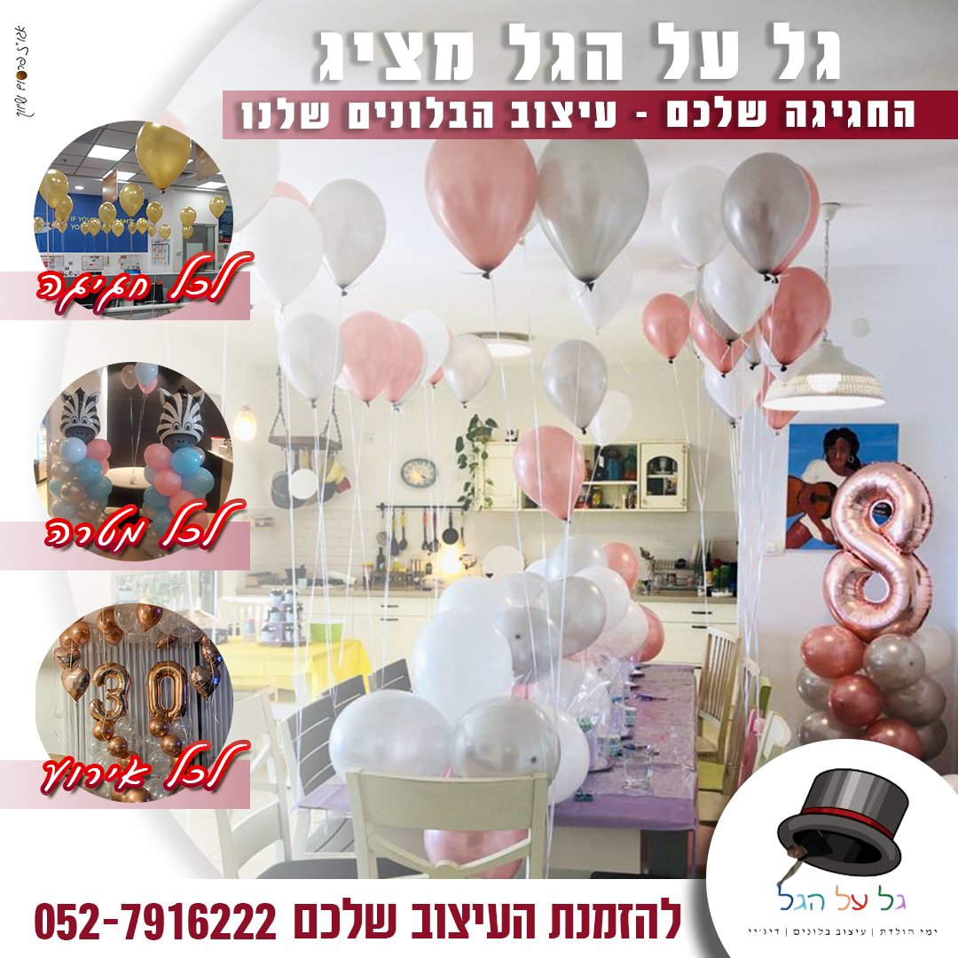 סידור בלונים בכרמיאל, זר בלונים בכרמיאל ועיצוב בלונים בכרמיאל- גל על הגל.